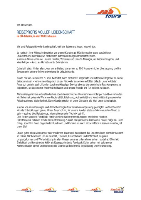 „Als Teil der sabtours-Familie tragen auch Sie einen wesentlichen Teil zum gemeinsamen Erfolg bei.“