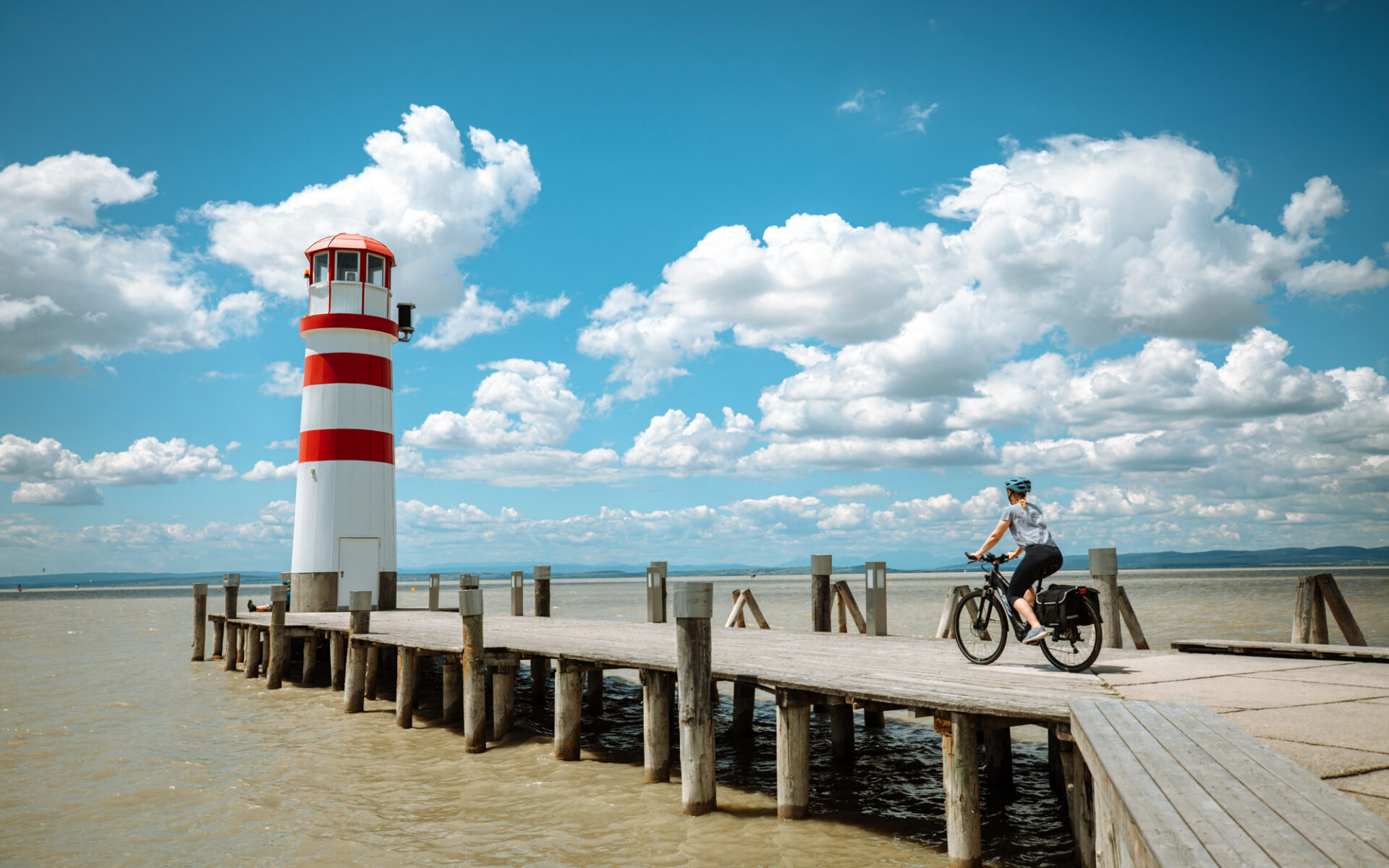 Die flachen Routen rund um den Neusiedlersee eigenen sich wunderbar, um die einzigartige Naturlandschaft zu genießen. Es warten dichte Schilfgürtel, Steppenwiesen und Salzlacken sowie eine reiche Vogelwelt, Wollschweine und weiße Esel. Entlang der sanften Weinberge begeistern idyllische Dörfer und gemütliche Heurige.