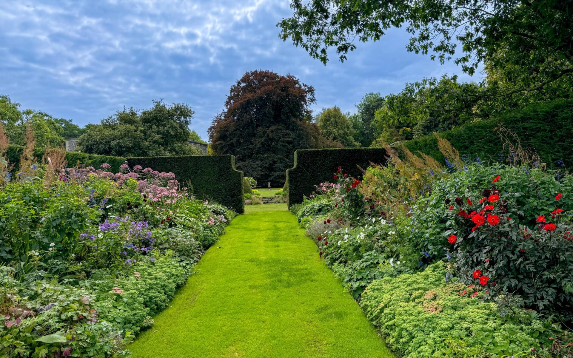 Der nächste Garten, der am Programm steht, ist HOLME HALE HALL. Mr. & Mrs. Simon Broke werden uns begrüßen und uns das sehr große und vielfältige Anwesen zeigen. Eine Besonderheit ist der direkt am Haus befindliche Nutzgarten und die dort gelegenen Borders. Als das Haus gebaut wurde, wollte niemand arbeitende Menschen sehen, daher wurden sie meistens weiter weg angelegt. Es gibt gestaltete Borders mit Buchs eingefasst, viele herrliche Blicke in die Landschaft, Obstspaliere, Gemüsegärten und alles, was das Herz begehrt. Ein schönes zweigängiges Lunch wollen uns die Besitzer vorbereiten.