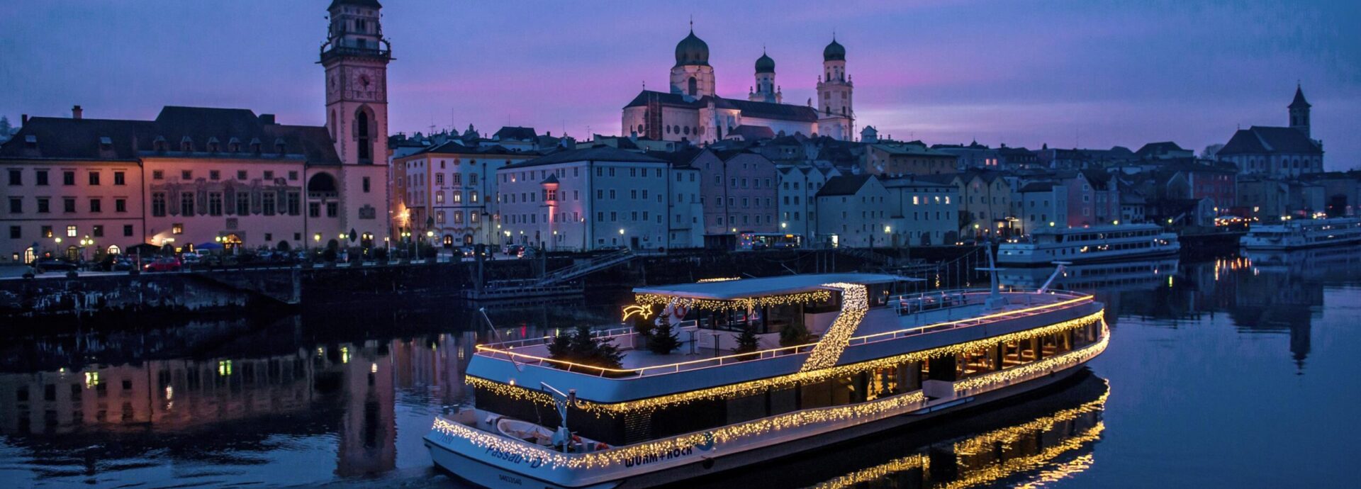 Mit Stil und Genuss erleben Sie auf dem Galaschiff MS Regina Danubia von Passau ins Donautal und zurück den Silvesterabend einmal anders. Begleitet mit stimmungsvoller Musik blicken Sie dem Jahreswechsel entspannt entgegen. Um Mitternacht können Sie das Silvesterspektakel in Passau vom Freideck aus genießen und bei einem Gläschen auf das Neue Jahr anstoßen!