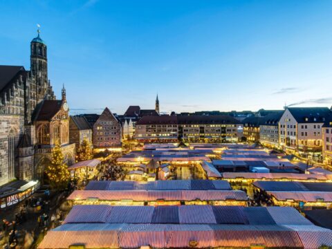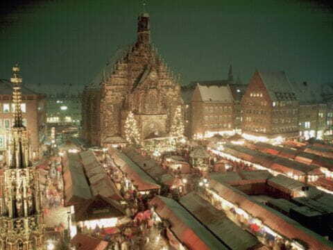 Einer der ältesten und bekanntesten vorweihnachtlichen Märkte Süddeutschlands ist der Christkindlesmarkt in Nürnberg. Etwa 180 mit rot-weißem Stoff dekorierte Holzbuden verbreiten auf…