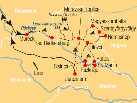 e-bike Reise im 4-Länder-Eck Radausflüge von der Terme Moravske durch Slowenien, Österreich, Kroatien & Ungarn